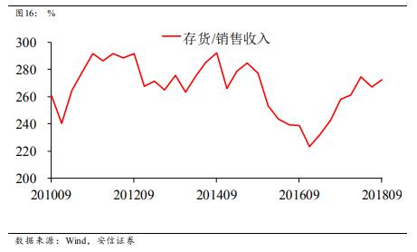 表征“基建+房地產”內需的水泥的各項指標在十月出現顯著反彈,原因可能是基建的大幅反彈或者是限產季到來前的搶產。但水泥今年以來持續(xù)的強勢值得關注。我們認為,一種可能是水泥行業(yè)的供改導致統計上的數字高估;另一種可能是2018年房地產開發(fā)模式的變化導致了新開工的高企支撐了水泥及鋼鐵的高漲。房企拿地高峰或已過去,未來可能預見的是房屋新開工增速下降以及鋼鐵水泥需求的下降,這與限產行業(yè)供給上升的疊加效果將可能導致鋼鐵水泥價格的大幅下滑。