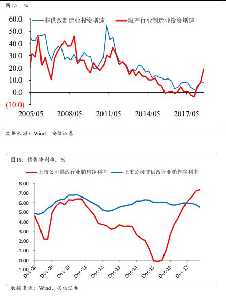 目前的關鍵問題是,這個回升將持續(xù)到什么時候。我們認為,這可能要等到供改行業(yè)的銷售凈利率回到相對正常的水平。目前來看,這個過程還將延續(xù)一段時間。因此,即使明年的非供改行業(yè)的制造業(yè)投資出現下降,供改行業(yè)的制造業(yè)投資依然保持高水平,形成對沖,導致制造業(yè)投資的下滑幅度可能并不會太大。