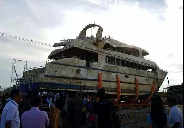 素拉切與隨行人員登上船初步勘探,并與造船專家開會了解情況。會議后,泰國隆洛警上將向媒體透露:自從船只打撈上岸后,船上發(fā)現(xiàn)些許乘客遺留物品,多為旅行背包、護照等;船內(nèi)違規(guī)裝有大型浴缸,船底則撈出3噸違規(guī)配重水泥。