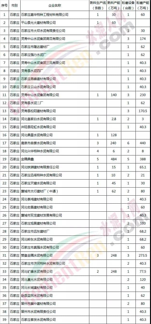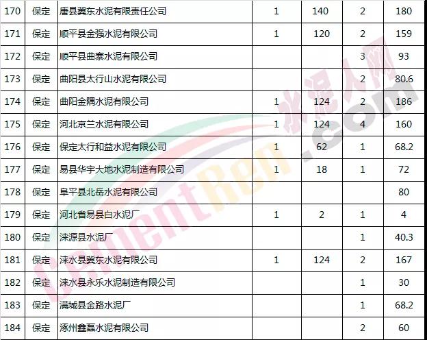 河北省部分水泥企業(yè)名單