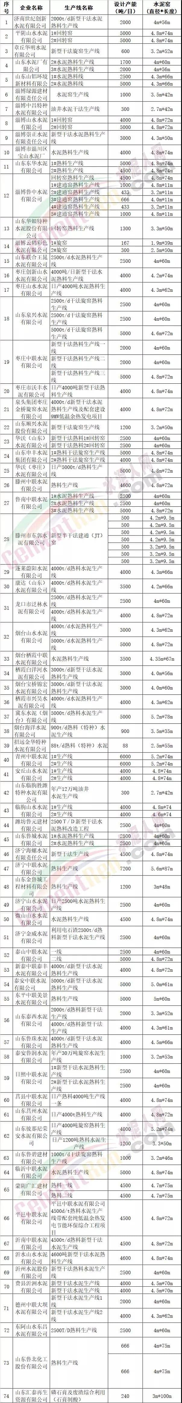 山東省部分水泥企業(yè)名單