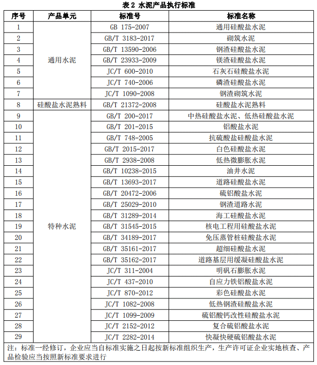 按企業(yè)標準、地方標準等生產的水泥產品,屬于本細則列出的相關國家標準和行業(yè)標準的范疇或適用范圍的,按相應的國家標準或行業(yè)標準取證。