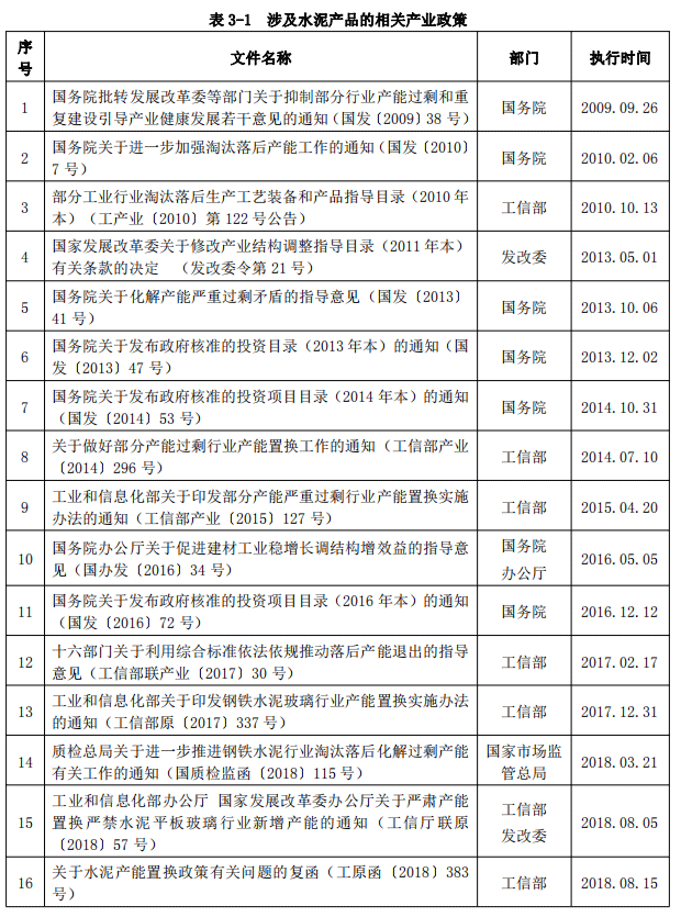 涉及水泥產品的相關產業(yè)政策見表3-1。