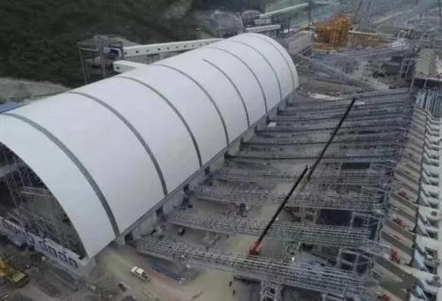 此外,這里安裝了單機(jī)處理能力達(dá)2000噸每小時(shí)的破碎設(shè)備和625噸每小時(shí)的篩分設(shè)備,有輸送能力達(dá)13000噸每小時(shí)的帶式輸送線,有重達(dá)73噸的單榀桁架和403噸的單座轉(zhuǎn)運(yùn)站,有高40米、跨度110米、容量達(dá)80萬立方米的全封閉骨料倉等。