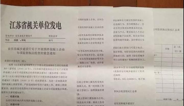 據(jù)了解,江蘇省住房城鄉(xiāng)建設(shè)廳一份落款時(shí)間為2018年8月31日關(guān)于“省住房城鄉(xiāng)建設(shè)廳關(guān)于開(kāi)展預(yù)拌混凝土企業(yè)專項(xiàng)監(jiān)督執(zhí)法檢查的緊急通知”一文中明確要求,在全省行政區(qū)域內(nèi)全面清理整頓無(wú)預(yù)拌混凝土企業(yè)專業(yè)承包資質(zhì)的預(yù)拌混凝土企業(yè)生產(chǎn)銷售行為。對(duì)無(wú)資質(zhì)生產(chǎn)經(jīng)營(yíng)的預(yù)拌混凝土企業(yè),會(huì)同公安、市場(chǎng)(工商)等部門(mén)堅(jiān)決予以取締。檢查時(shí)間為2018年9月1日至9月10日,各設(shè)區(qū)市建設(shè)行政主管部門(mén)于2018年9月13日前將預(yù)拌混凝土企業(yè)專項(xiàng)監(jiān)督執(zhí)法檢查情況匯總表報(bào)省住房城鄉(xiāng)建設(shè)廳工程質(zhì)量安全監(jiān)管處,并抄送各設(shè)區(qū)市人民政府。