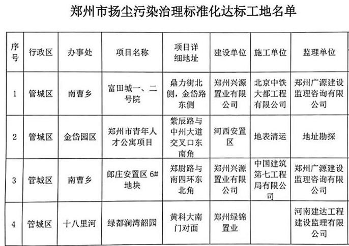 昨日,市控塵辦先后來到鄭東新區(qū)龍湖辦事處鄭東新龍湖區(qū)金融島外環(huán)建筑群組團(tuán)五工程,管城區(qū)南曹鄉(xiāng)富田城一、二號(hào)院等10個(gè)揚(yáng)塵治理達(dá)標(biāo)工地,集中發(fā)放“綠牌”。首批10個(gè)工地符合掛綠牌條件,公布如下: