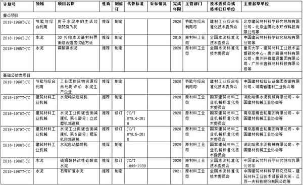 近期,工業(yè)和信息化部辦公廳關(guān)于印發(fā)2018年第四批行業(yè)標(biāo)準(zhǔn)制修訂計劃的通知(以下簡稱“標(biāo)準(zhǔn)”)中包含了十項水泥相關(guān)標(biāo)準(zhǔn),分別是:用于水泥中的生活垃圾焚燒飛灰、3D打印水泥基材料界面結(jié)合強度試驗方法、磷酸鎂水泥、工業(yè)固體廢物資源綜合利用評價水泥生產(chǎn)企業(yè)、水泥噸袋包裝機、水泥工業(yè)用硬齒面減速機第4部分:立式磨機減速機、水泥工業(yè)用硬齒面減速機第5部分:輥壓機用減速機、水泥自動插袋機、硫鋁酸鈣改性硅酸鹽水泥、石膏礦渣水泥。
