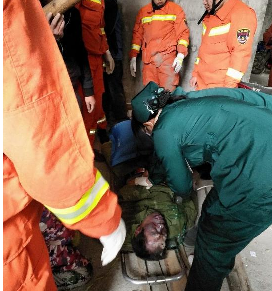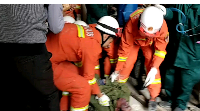 消防員到場后發(fā)現(xiàn),一到二樓混凝土樓梯坍塌,致一名施工的工人被埋壓。消防員使用液壓頂撐桿實(shí)施救援,經(jīng)過十分鐘處置,埋壓人員被救出,但已無生命跡象。