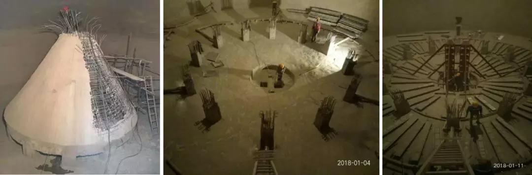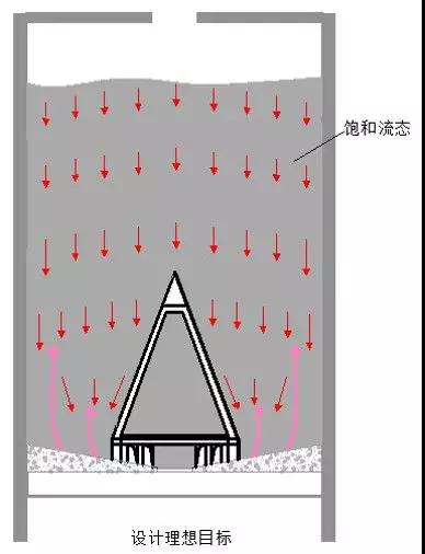 1. 由于全行業(yè)對粉體動力學(xué)理論缺乏清晰完整的研究掌握,為了避免全空庫的中心漏斗流模式,一般在庫底都采用大型減壓錐設(shè)計,以前期理論上通過改變庫底羅茨風(fēng)機多級環(huán)形斜槽陣的氣動流化作用外擴到庫底部外壁,進(jìn)而實現(xiàn)環(huán)庫的活化卸放,如圖2所示。