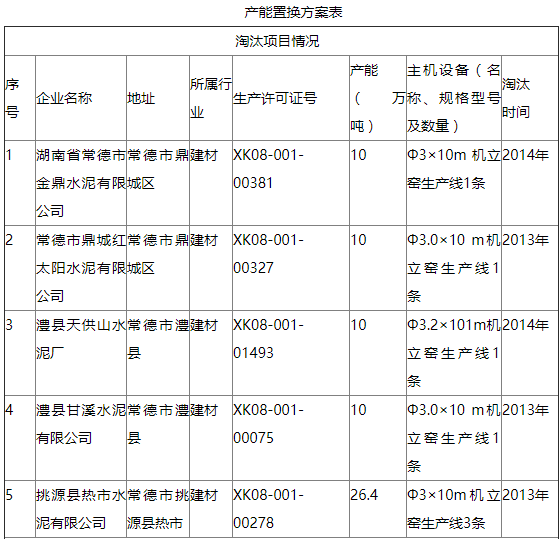 注:2014年常德市制定該項目產(chǎn)能置換方案時,國家尚未出臺具體的產(chǎn)能置換辦法,即《工業(yè)和信息化部關(guān)于做好部分產(chǎn)能嚴重過剩行業(yè)產(chǎn)能置換工作的通知》(工信部產(chǎn)業(yè)〔2014〕296號)和《工業(yè)和信息化部關(guān)于印發(fā)部分產(chǎn)能嚴重過剩行業(yè)產(chǎn)能置換實施辦法的通知》(工信部產(chǎn)業(yè)〔2015〕127號),故按《國務(wù)院關(guān)于化解產(chǎn)能嚴重過剩矛盾的指導(dǎo)意見》(國發(fā)〔2013〕41號)精神進行方案制定與確認。