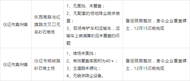 秋冬季期間環(huán)境執(zhí)法檢查發(fā)現(xiàn)問題清單(12月份第一周)