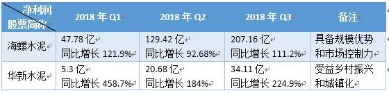 從2018年前三季度的整體業(yè)績來看,海螺水泥、華新水泥的業(yè)績呈現(xiàn)遞增態(tài)勢,并保持高速增長,建議投資者予以關(guān)注。