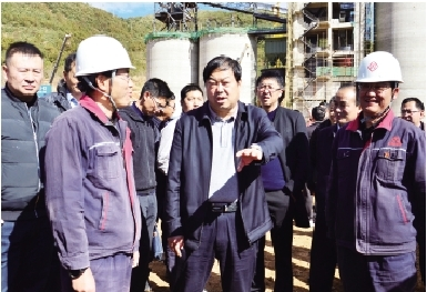 楊健在賓川縣紅塔滇西水泥股份有限公司認(rèn)真了解項目建設(shè)情況。