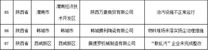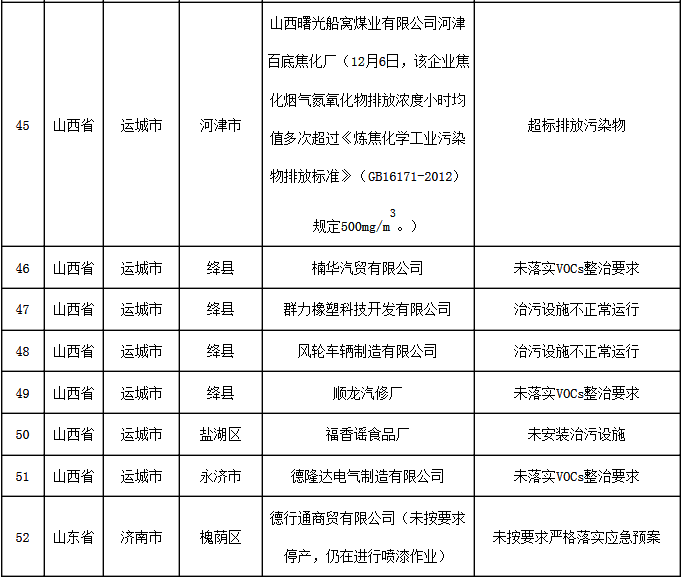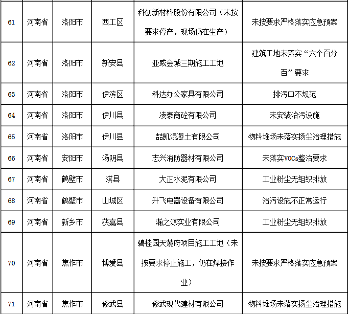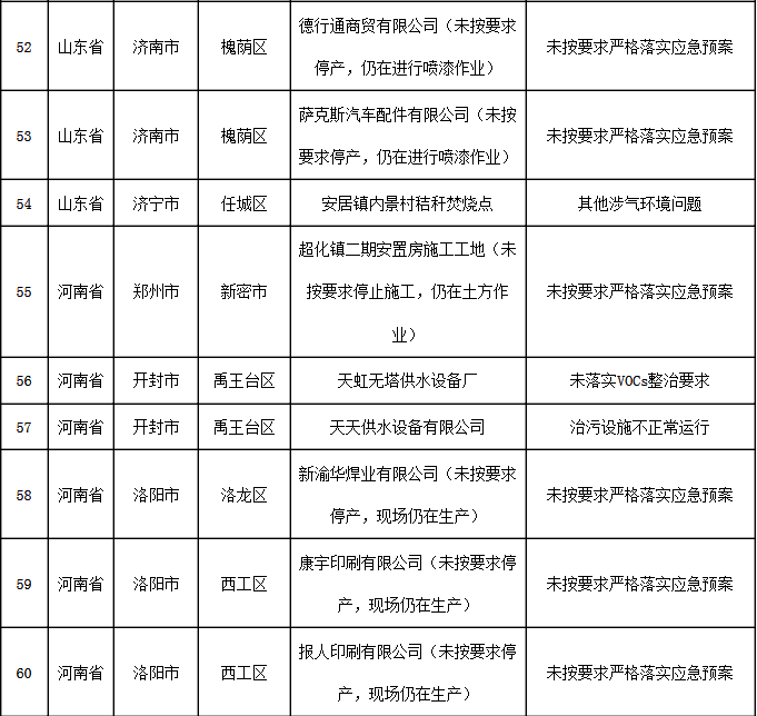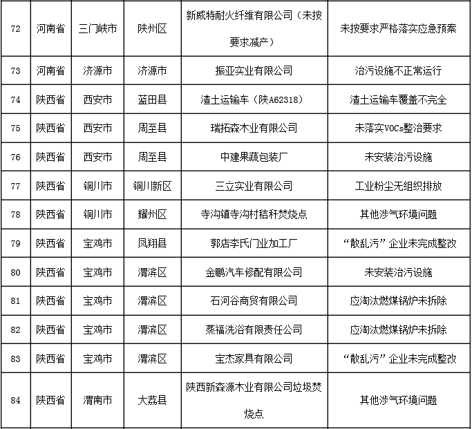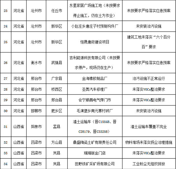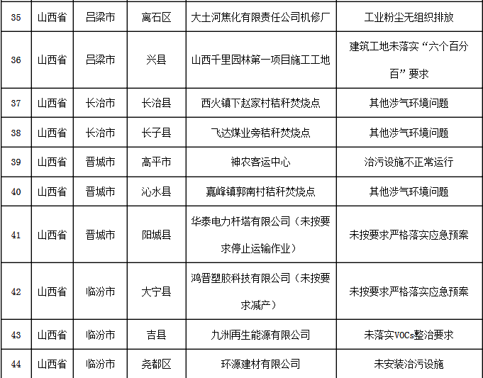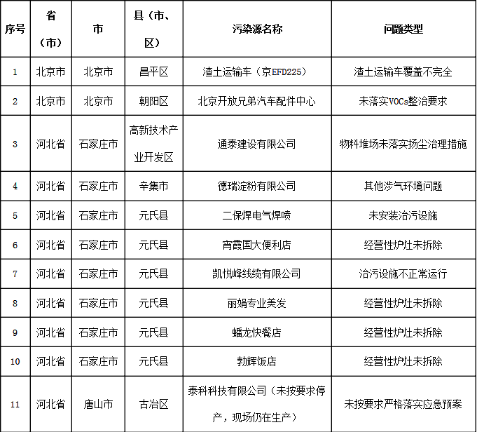 強(qiáng)化監(jiān)督發(fā)現(xiàn)涉氣環(huán)境問題匯總表