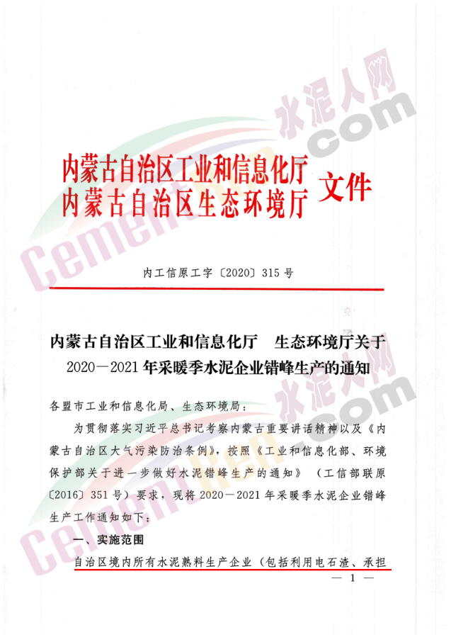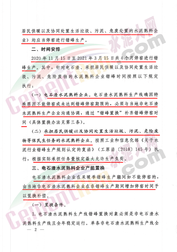承擔(dān)居民供暖及協(xié)同處置生活垃圾、污泥、危險廢物等保民生任務(wù)的水泥熟料企業(yè),按照工業(yè)和信息化部《關(guān)于水泥行業(yè)錯峰生產(chǎn)規(guī)則認(rèn)定的復(fù)函》(工原函[2018]145號)執(zhí)行,根據(jù)實際承擔(dān)任務(wù)量核定最大允許生產(chǎn)負(fù)荷。
