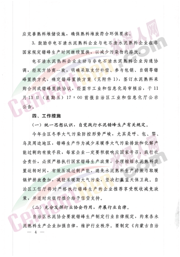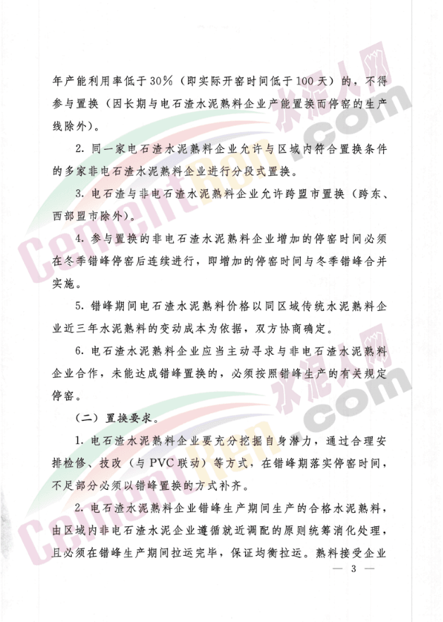 其中,電石渣水泥熟料企業(yè)(電石渣水泥熟料生產(chǎn)線)確因特殊原因不能停窯或未達(dá)到錯峰停窯期限的,必須與當(dāng)?shù)胤请娛嗍炝仙a(chǎn)企業(yè)溝通協(xié)調(diào),通過“錯峰置換”補齊錯峰停窯時間。