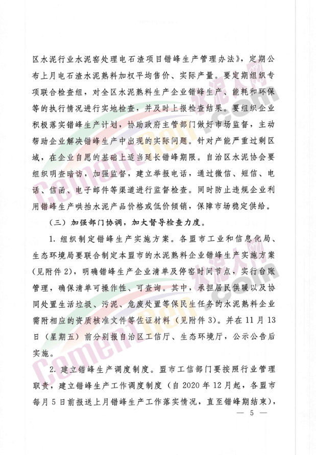 內(nèi)蒙古自治區(qū)水泥協(xié)會要組織明察暗訪,加強(qiáng)監(jiān)督,建立舉報電話,通過微信、短信、電話、信函、電子郵件等渠道進(jìn)行監(jiān)督檢查。同時防止違規(guī)企業(yè)利用錯峰生產(chǎn)哄抬水泥產(chǎn)品價格或低價傾銷,保障市場穩(wěn)定供給。