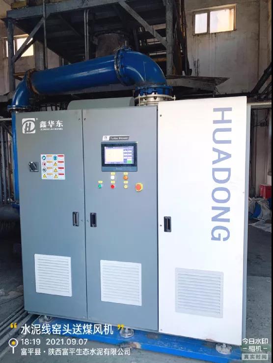 陜西富平生態(tài)水泥有限公司是陜煤化集團陜西生態(tài)水泥股份有限公司所屬全資子公司,此前,其5000T/D水泥生產(chǎn)線上使用的4臺羅茨鼓風機(其中2臺功率為250KW,2臺為185KW),存在嚴重的能耗高、噪音大且經(jīng)常需要維修保養(yǎng)的問題。為貫徹環(huán)保、節(jié)能、可持續(xù)發(fā)展的經(jīng)營理念,綜合比較多款風機后,富平生態(tài)水泥最終決定決定采用山東華東風機有限公司(以下簡稱“華東風機”)的磁懸浮高速離心鼓風機對原有的羅茨風機進行更換。